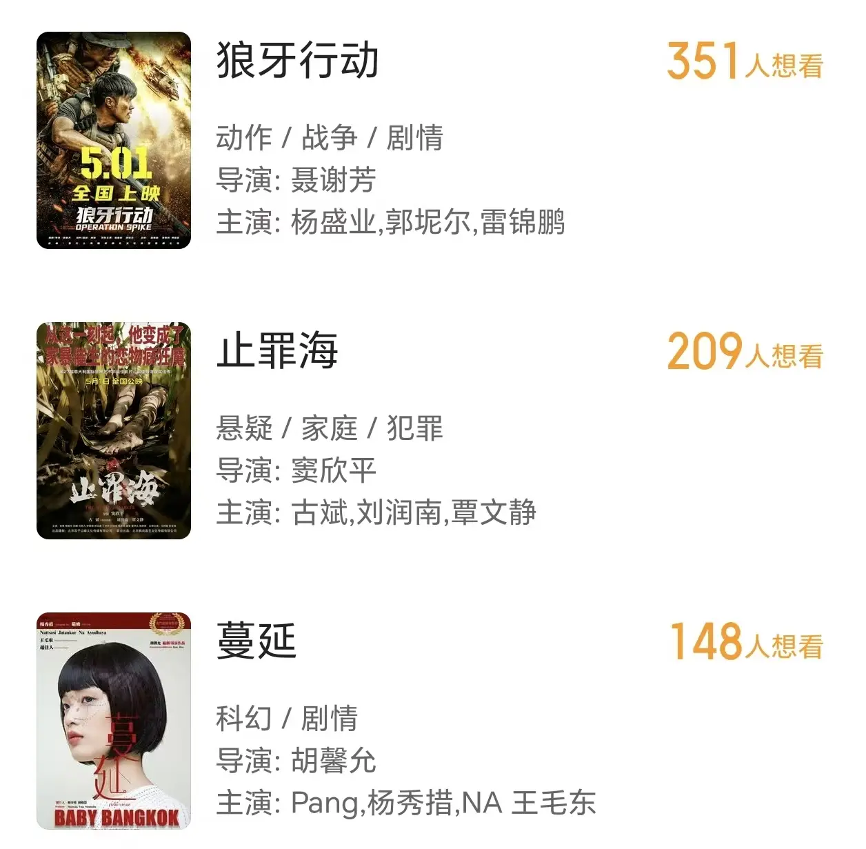 据国内的电影平台所显示,目前共有十七部新片确定定于今年的五一档上映。