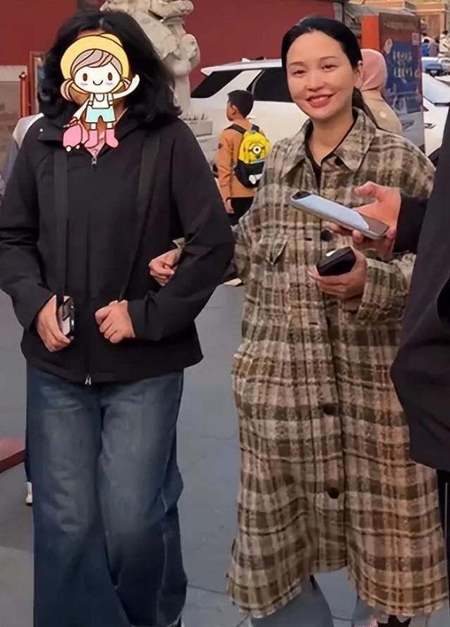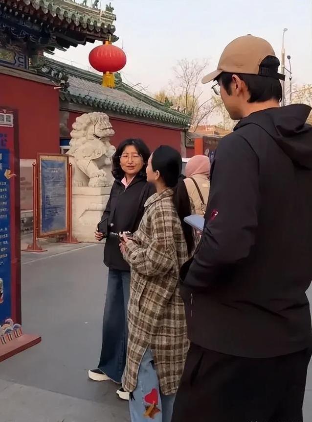 那天金莎穿了长款格子外套,搭配牛仔裤。这样的打扮在游玩时显得随意,却也显出一些变化,小腹处微微隆起,让人联想到生活中的自然状态。她主动挽着婆婆的手臂,一起散步聊天。婆媳两人站在一起,年龄看起来相差不大,婆婆脸上满是笑容。金莎没有摆出明星的姿态,在长辈面前尽到儿媳的责任,这种相处方式让人觉得温暖。