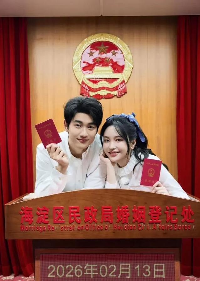 两人选择在四月九日公开结婚消息。不过实际领取结婚证的时间是二月十三日,地点在北京海淀区民政局。中间间隔了近两个月,才把这个喜讯分享给大家。之前在综艺节目里,他们就提到会走进婚姻,现在终于实现了这个愿望。